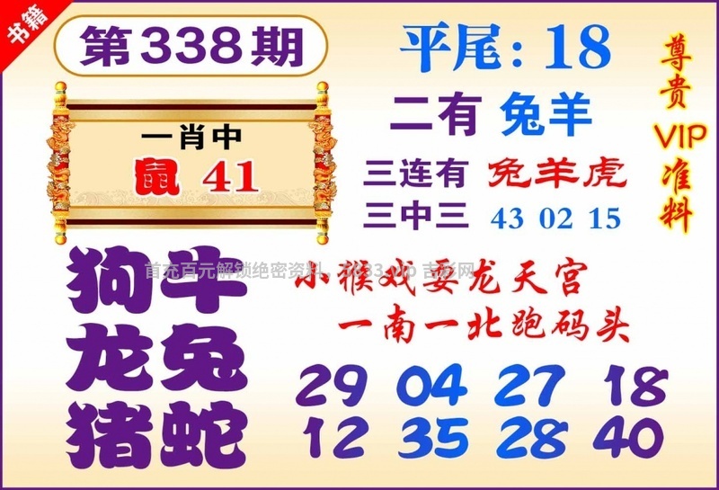 | 338期:七肖【狗牛猴兔虎马蛇】开:狗08准 |